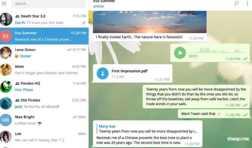 端到端加密:聊天、通话和文件传输都受到加密保护。